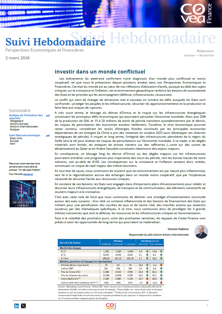 Face à la volatilité des prochains jours, voire des prochaines semaines, les équipes de Covéa Finance sont prêtes à saisir les opportunités de long terme qui pourraient se matérialiser.